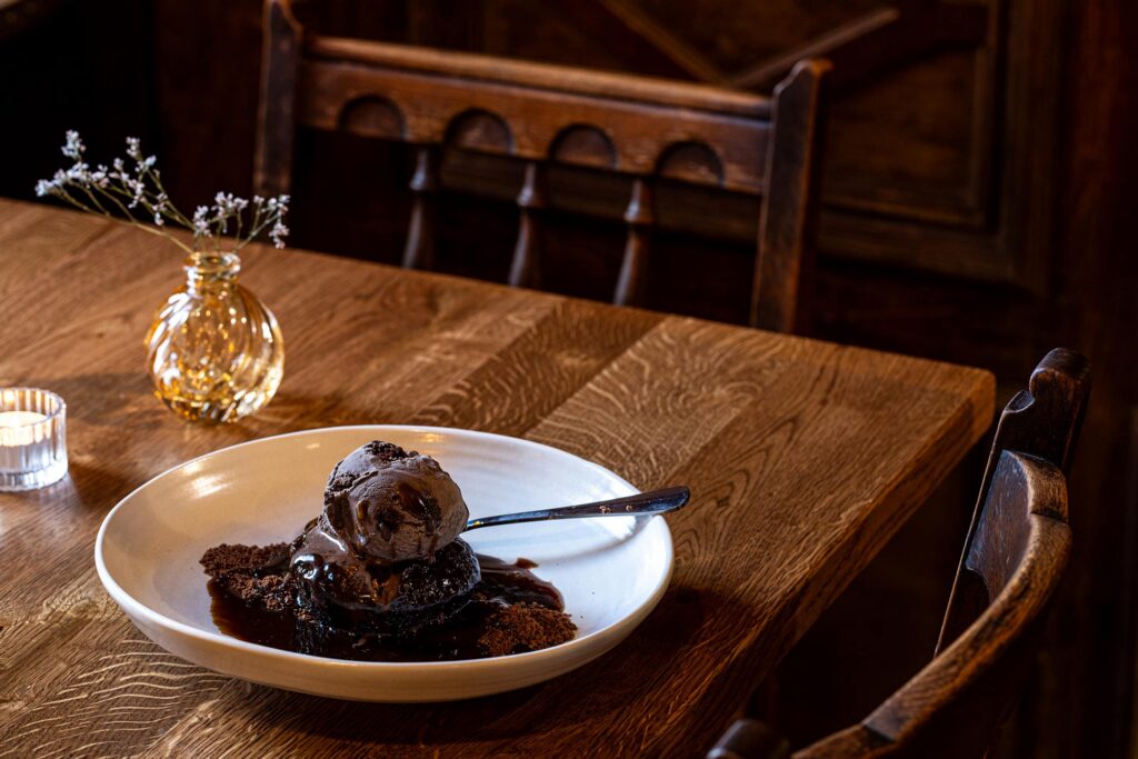 Sticky toffee pudding with Guinness & Chocolate ice-cream