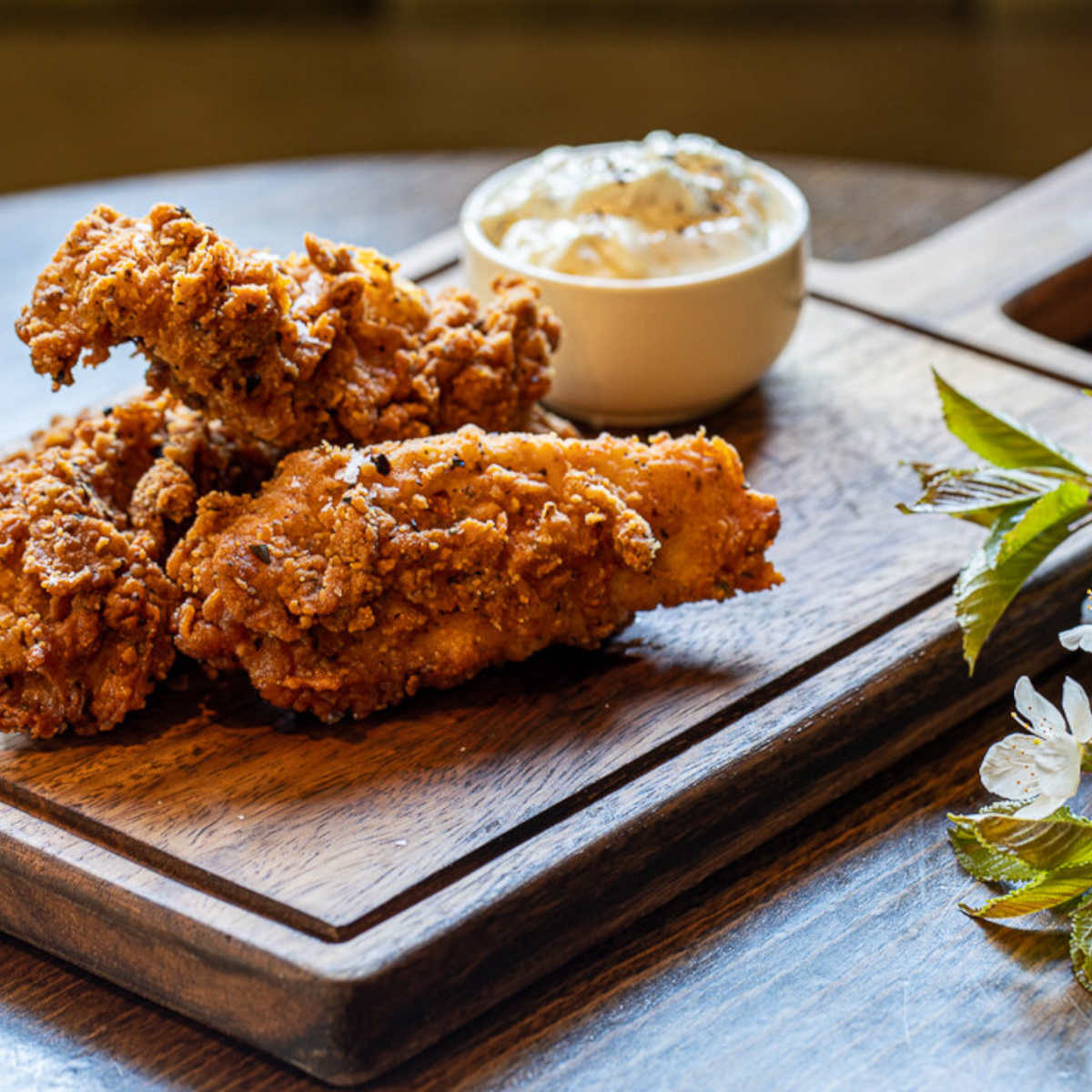 Southern-fried chicken strips, garlic mayo | 6.5 739 kcals