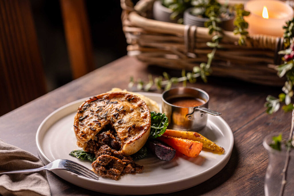 Wild mushroom bourguignon pie, seasonal greens, roasted roots, gravy (ve) | 17 1049 kcals