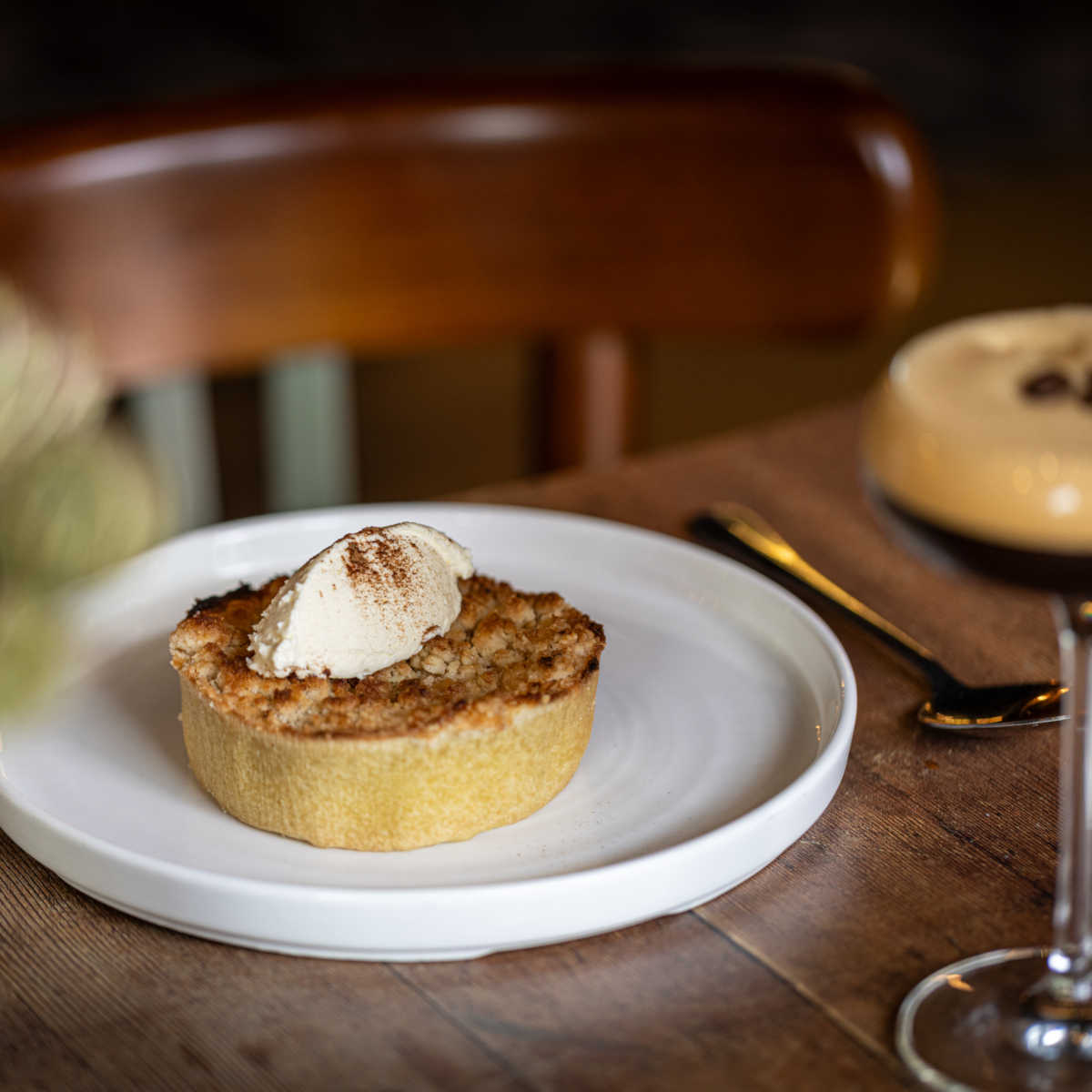 Apple crumble tart, cinnamon cream (v) (ve available) | 6.5 613 kcals